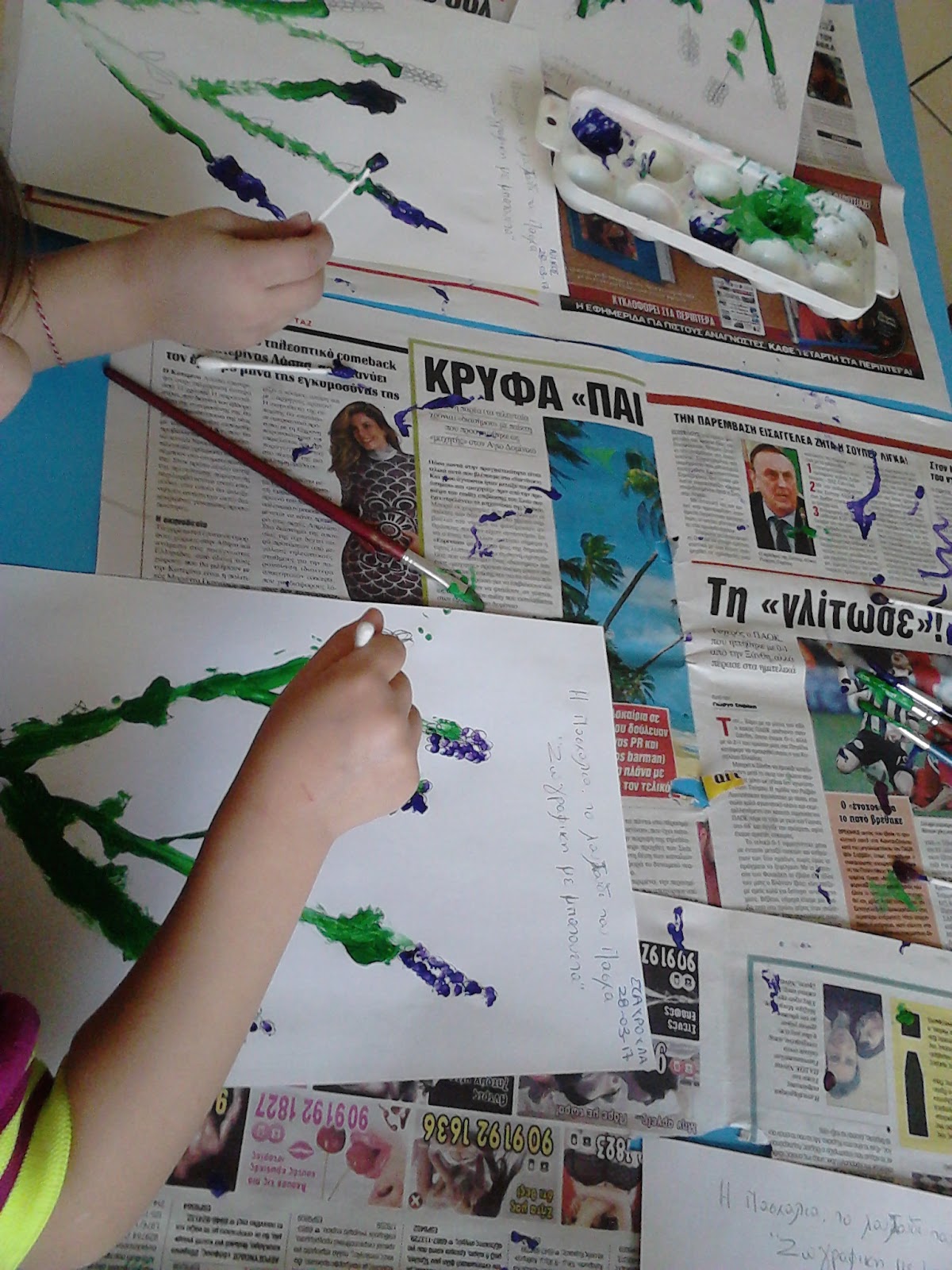 | Με φελλούς και χρώμα φτιάχνουμε το Πρωτομαγιατικο στεφάνι μας. |